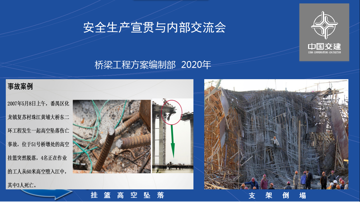 部分宣贯了《清静生产法》、《建筑法》、《消防法》等执法对修建施工领域的要求;;;;;;团结详细营业,,,,,,部分还宣贯了交通运输部、住建部、水利部和国家铁路局对施工计划手艺和清静方面的要求;;;;;;部分还宣贯了优德88官网网站二航局清静生产管理制度;;;;;;最后,,,,,,契合“消除事故隐患,,,,,,筑牢清静防地”主题,,,,,,交流会开展了桥梁工程典范清静事故案例剖析,,,,,,剖析了人工挖孔桩、支架施工、挂篮施工、爬模施工和钢围堰施工等事故案例。。。。。。。。