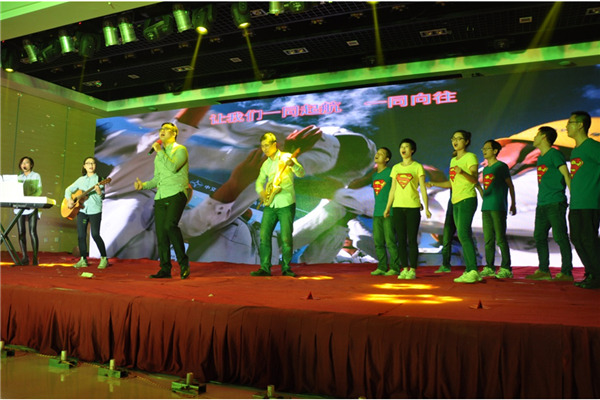 3月29日,,,,,公司会计部举行“共享新未来”年会,,,,,手艺中心音乐协会应邀加入交流,,,,,并演出“青春二航”和“加州旅馆”两个节目。。。。。。。。中心工会和团委全心组织,,,,,音乐协会成员起劲排演,,,,,经由一个多月的准备,,,,,为晚会上演了一场精彩的演出。。。。。。。。“青春二航”是手艺中心企业歌是手艺中心原创歌曲,,,,,作词、作曲等均由手艺中心员工完成,,,,,歌曲好听易唱,,,,,头脑正能量,,,,,是局向导多次点赞的歌曲。。。。。。。。“加州旅馆”是中心音乐协会为此次晚会全心准备的歌曲,,,,,领队兼吉他手姚清涛、主唱蒋道东、吉他手李宁、鼓手罗甜、钢琴刘丹配合默契,,,,,旋律从平缓到激昂,,,,,再到缱绻悱恻的热潮,,,,,歌曲勾魂摄魄,,,,,现场热潮迭起。。。。。。。。