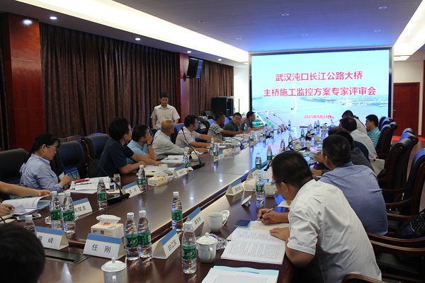 9月24日,,,,,,沌口大桥项目公司及总监办在武汉组织召开了“武汉沌口长江公路大桥主桥施工控制总体计划专家评审会”,,,,,,聚会约请了5位专家组成专家组,,,,,,省交通厅质监局、大桥建设、设计、监理、施工及钢箱梁制造等单位的代表加入了聚会。。。。。研发中心总司理张永涛、监控手艺研究室主任田唯等代表监控单位参会,,,,,,监控手艺研究室主任助理朱浩作了沌口大桥主桥施工监控计划汇报。。。。。
