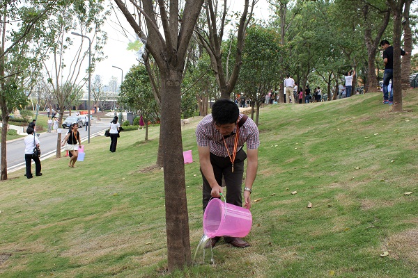 手艺中心施工设计事业部常务副总司理兼总工何超然浇灌所认养树木