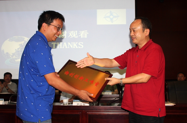 公司工会副主席许世勇向杨钊立异事情室授牌