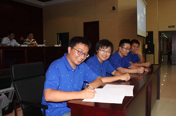 随后,,,,,,,,手艺中心施工设计事业部常务副总司理、总工何超然宣读了杨钊立异事情室建设文件。。。。。立异事情室领武士物杨钊汇报了事情室建设情形及总体目的。。。。。公司工会副主席许世勇为事情室授牌。。。。。接过事情室牌子后,,,,,,,,杨钊与三名理论盘算方面的徒弟签署了师徒结对条约。。。。。