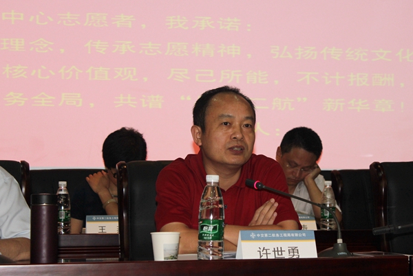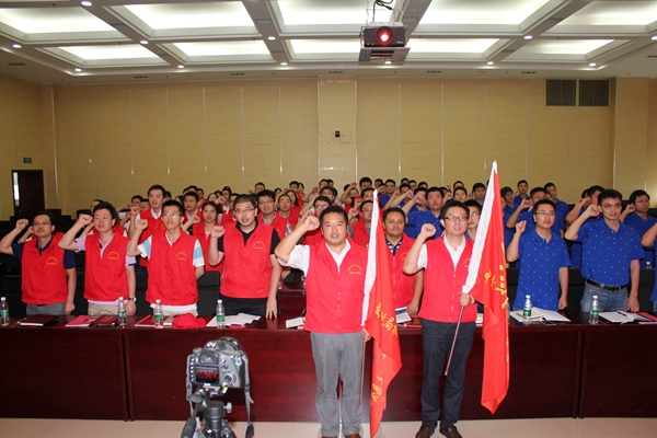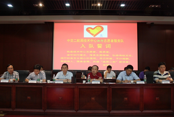 接着,,,,,,,,手艺中心研发中心总司理张永涛宣读了自愿者服务队建设文件。。。。。服务队队长田唯、副队长卢勇划分从公司工会副主席许世勇、手艺中心常务副主任尹应军手中接过知行自愿者服务队队旗,,,,,,,,并向导全体队员在参会向导的见证下庄重宣誓。。。。。