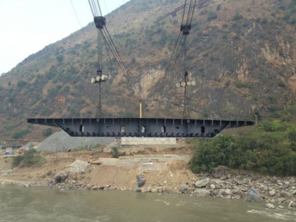 4月14日,,,,,,,由手艺中心设计、昆明分公司施工的怒江二桥缆索吊试吊,,,,,,,经磨练,,,,,,,该缆索吊空载、重载过跨塔偏、最大垂度均知足设计要求,,,,,,,首试乐成。。。。。。。