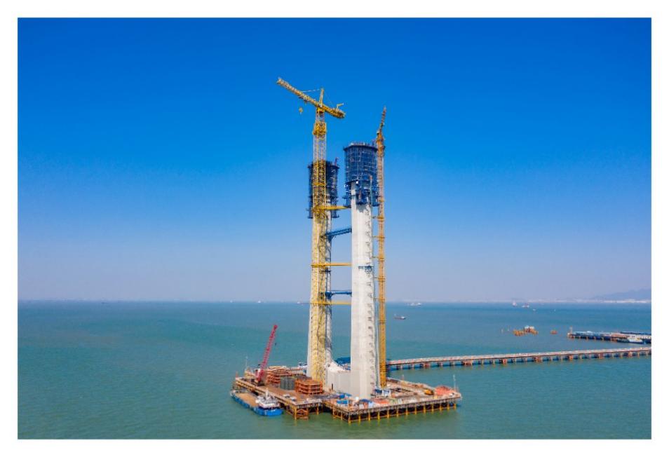 一体化筑塔机凭证妄想乐成装置运用于伶仃洋大桥东索塔,,, ,, ,,,基于一体化智能筑塔机设置的自动化布料及振捣系统可实现塔柱混凝土360度偏向全笼罩自动布料及振捣; ;;;;;其搭载的智能养护系统可实现自动温湿度调解的混凝土蒸汽养护,,, ,, ,,,使桥塔现场混凝土养护抵达厂内标准化养护水平; ;;;;;通过设置智能监控监测系统可实现塔柱施工全流程24小时不中止监控。。。。。。