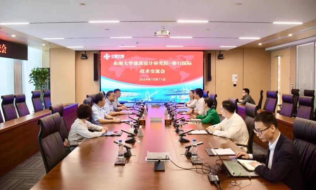 克日,,,,,,,东南大学交通学院副院长丁建明一行到智行国际公司开展手艺交流。。。。。公司党委书记、董事长、总司理赵璐及各部分相关职员加入聚会。。。。。