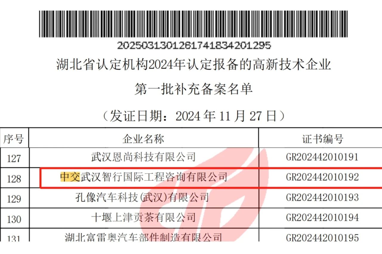 克日,,,,,,凭证天下高新手艺企业认定管理事情向导小组办公室宣布的《对湖北省认定机构2024年认定报备的高新手艺企业举行第一批增补备案的通告》,,,,,,优德88官网网站武汉智行国际工程咨询有限公司通过“国家高新手艺企业”复审认定,,,,,,再次取得“高新手艺企业证书”(证书编号GR202442010192)。。。。。 。。